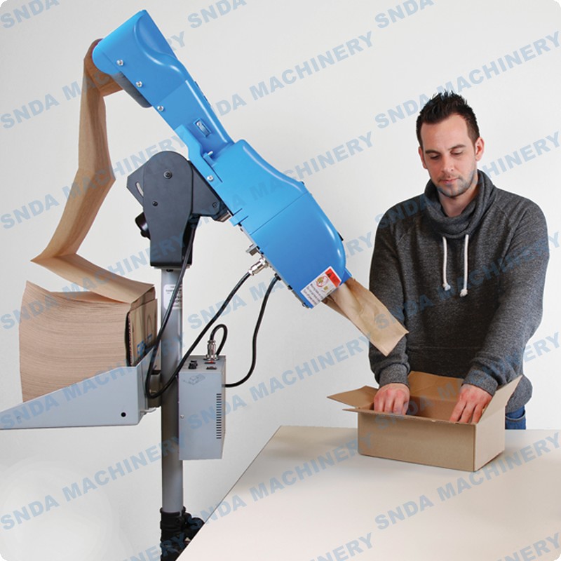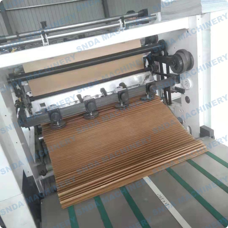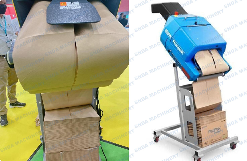 This paper folding machine is a new design with two roll Kraft paper feeding and do C type folding inline to form one 2-layer paper and then do perforation cutting and folding finally. The finished paper will be in fanfold type and has much stronger in surface as packing cushioning material.
